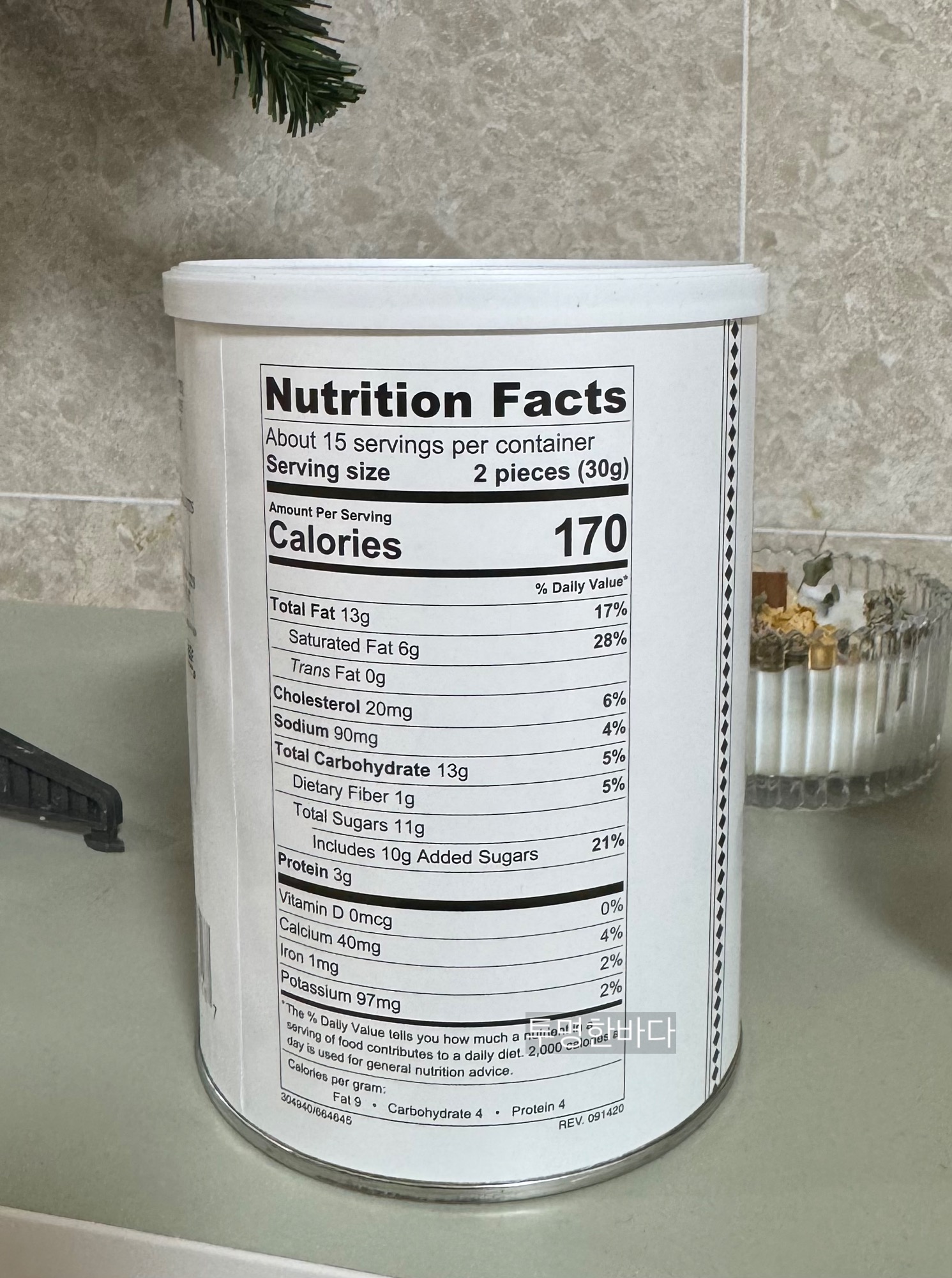 454g 용량의 하얀 통에 약 30개 정도가 담겨있어요[8].