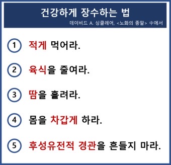 싱클레어 교수의 연구는 노화 속도를 조절할 수 있는 여러 가지 방법을 제시하고 있습니다: