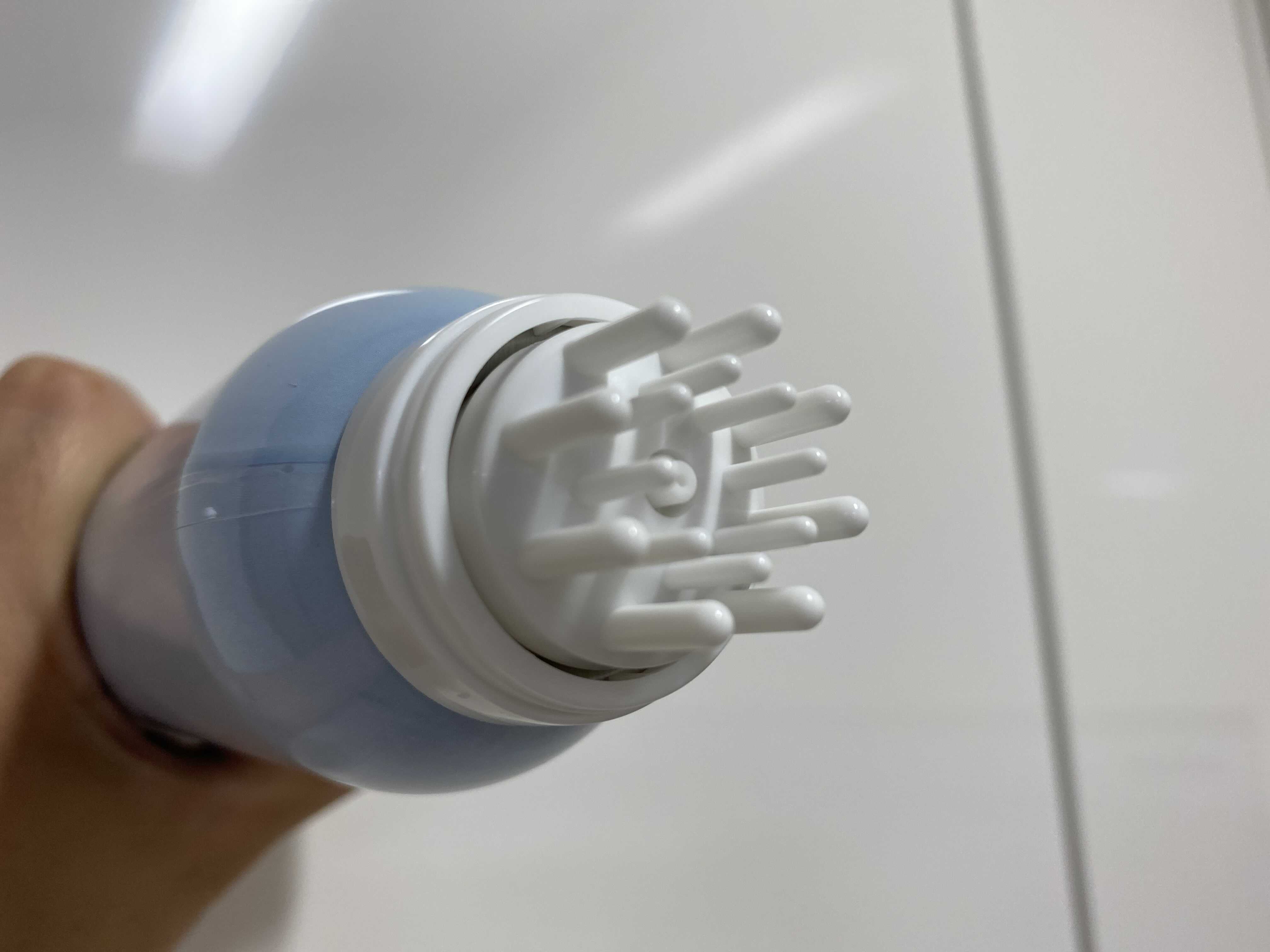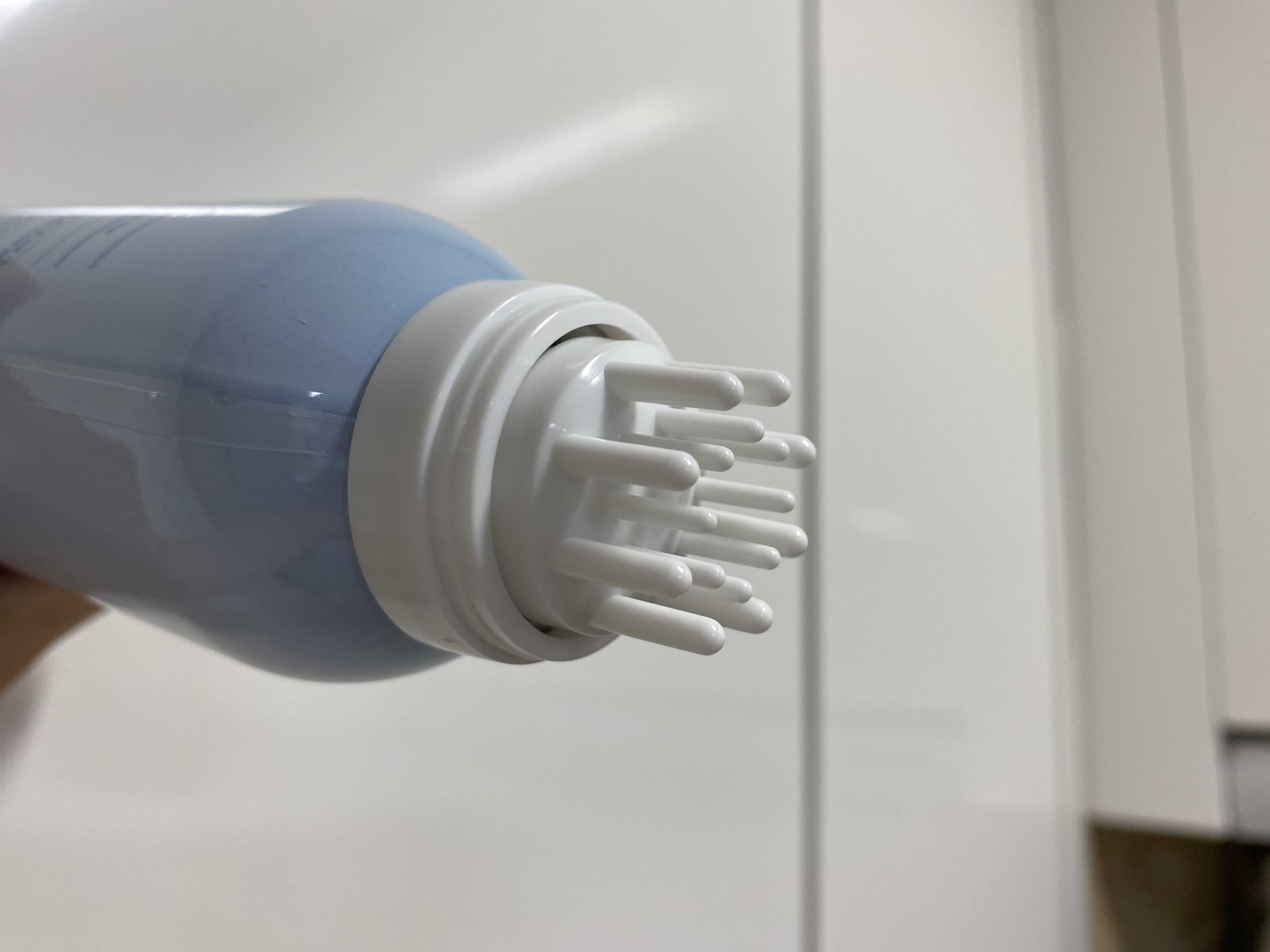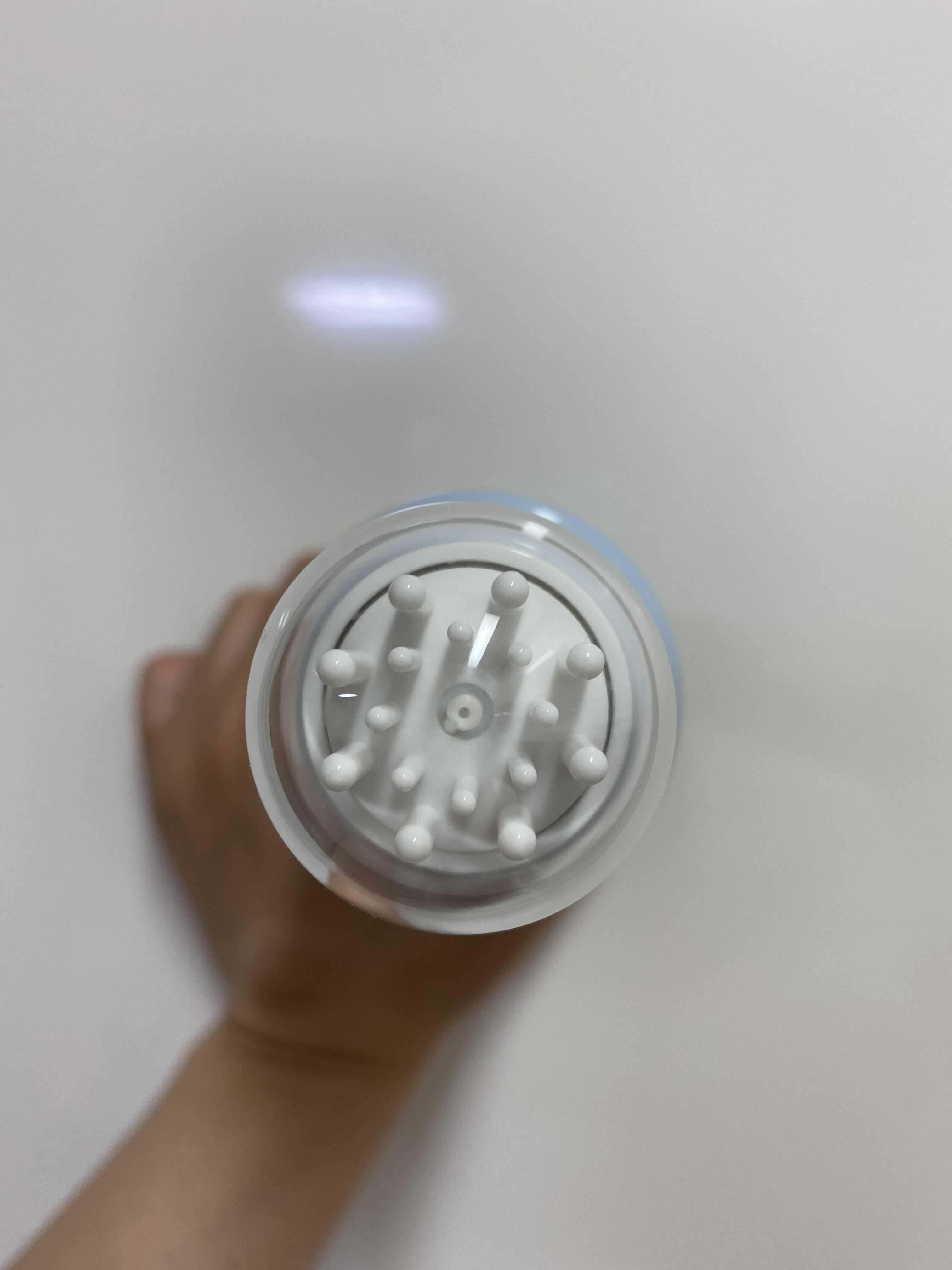 사진처럼 용기의 상단부를 정수리 부분에 누르면 제품이 분사가 된답니다.