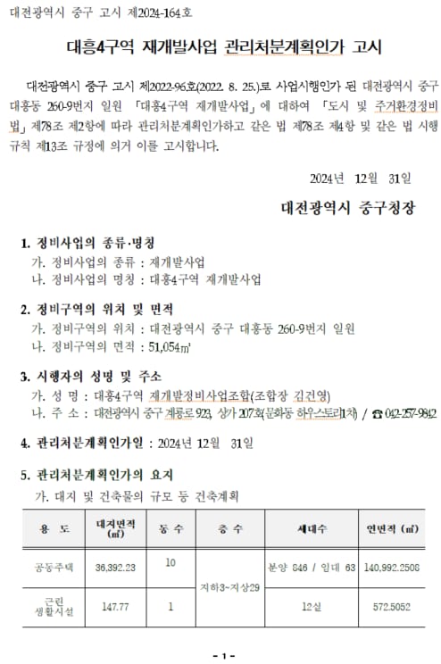 대전 중구 대흥동4구역 관리처분인가 고시 | 대전 대흥동4구역 재개발사업 | 대전 재개발 재건축