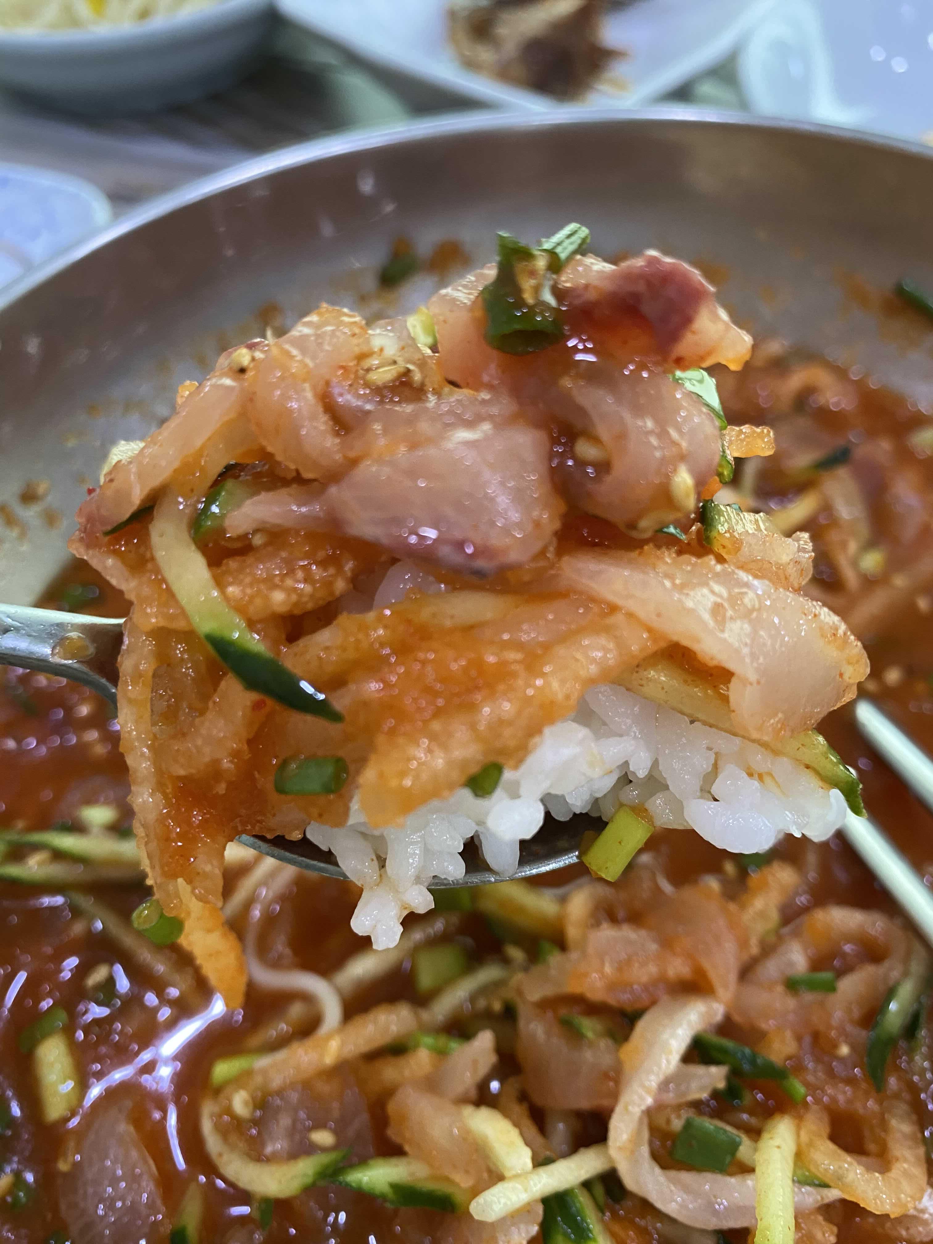 밥에 물회 한가득 올려서 한입만 쇼