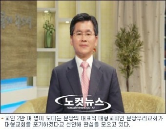 [1] 대형교회 포기 선언 분당우리교회 이찬수 목사 - 好學의 智慧硏究所 https://jesus1225.tistory.com/20072