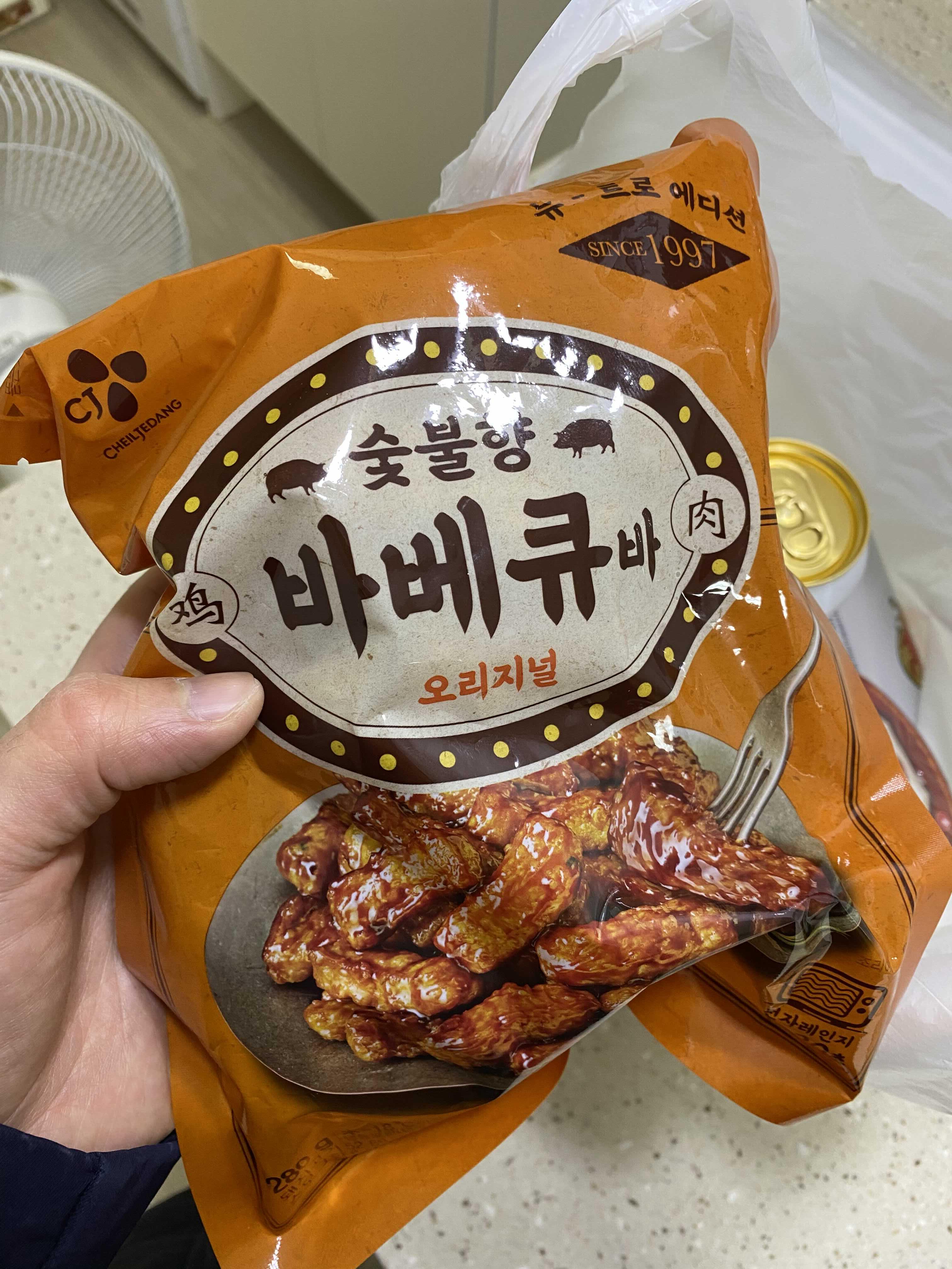 구매한 냉동 숯불향 바베큐바 !! CJ 브랜드 네요 (ㅋㅋ처음알았음)