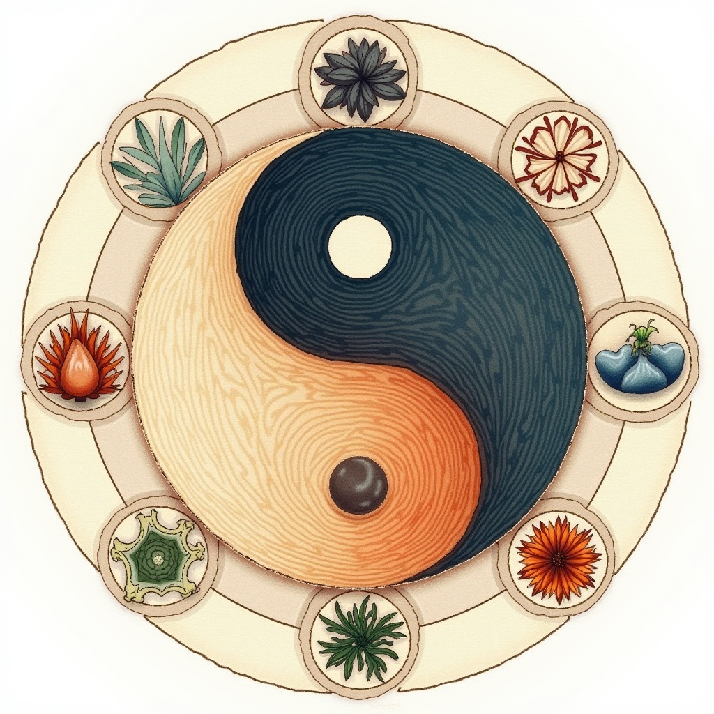 음양은 우주의 모든 현상을 설명하는 기본 원리입니다. 양은 밝음, 활동성, 팽창을 나타내며, 음은 어두움, 정적, 수축을 의미합니다[1]. 모든 사물과 현상은 음양의 상호작용으로 이루어진다고 봅니다.