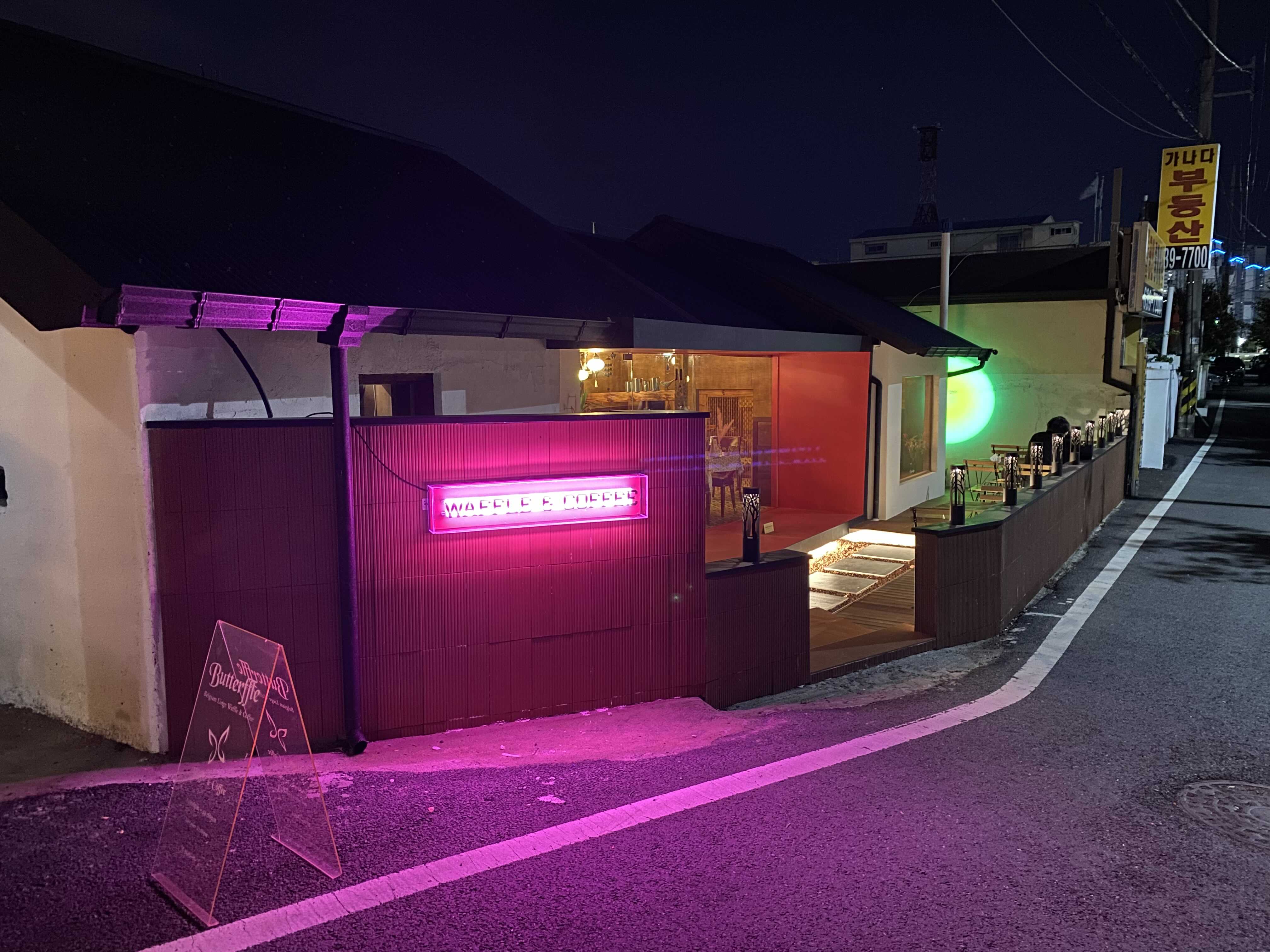 오늘 가본곳은 외관 조명이 화려한 버터플 카페