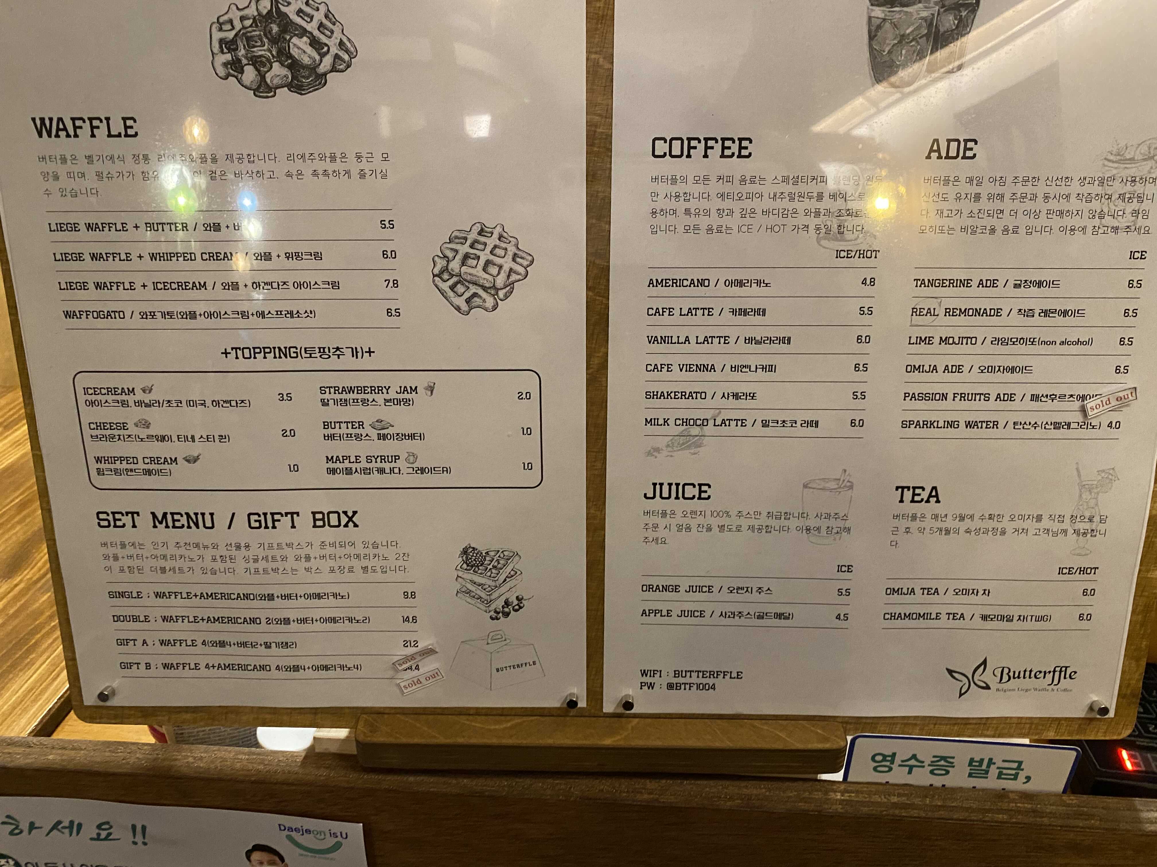 버터플 카페의 메뉴
