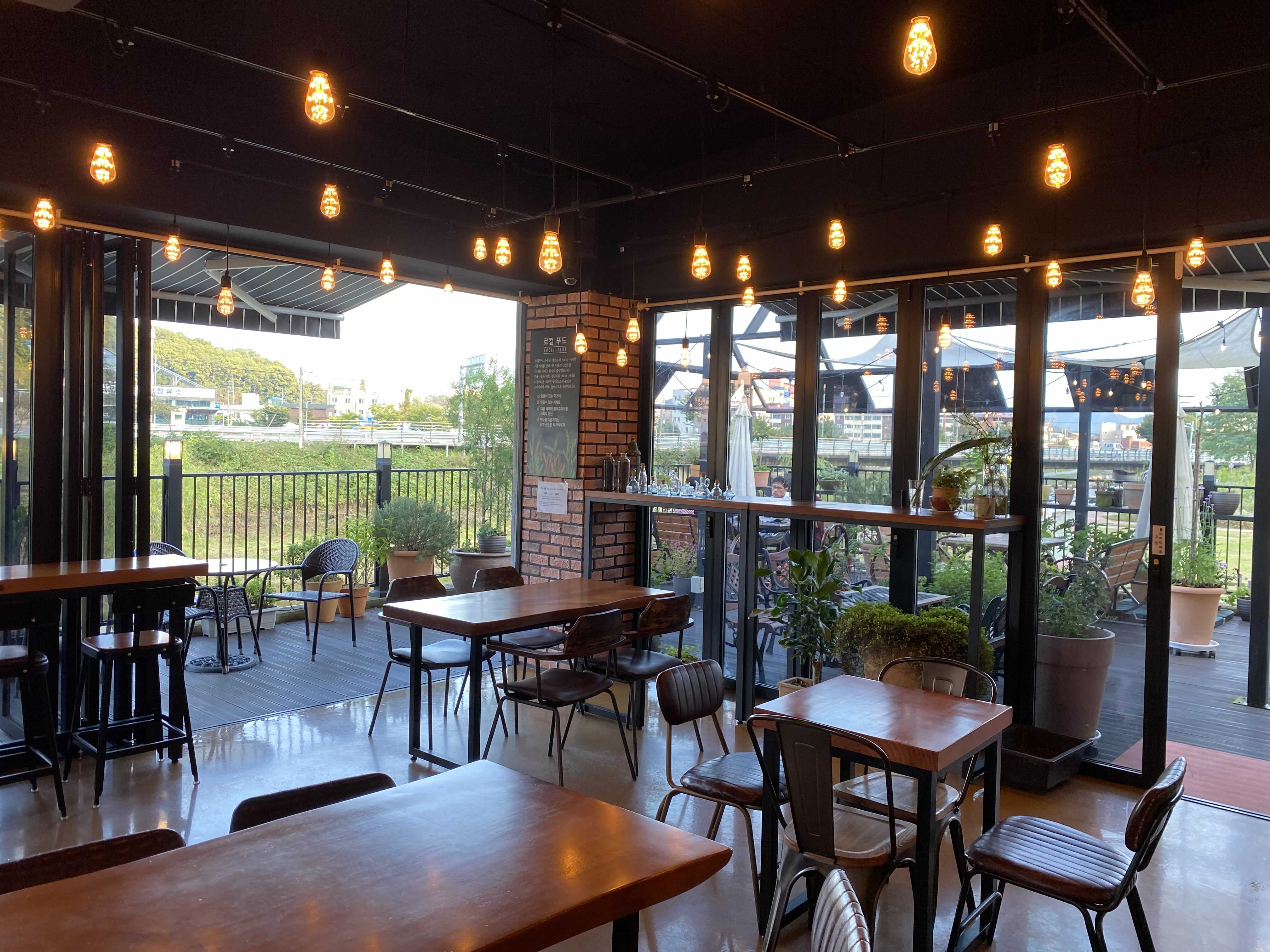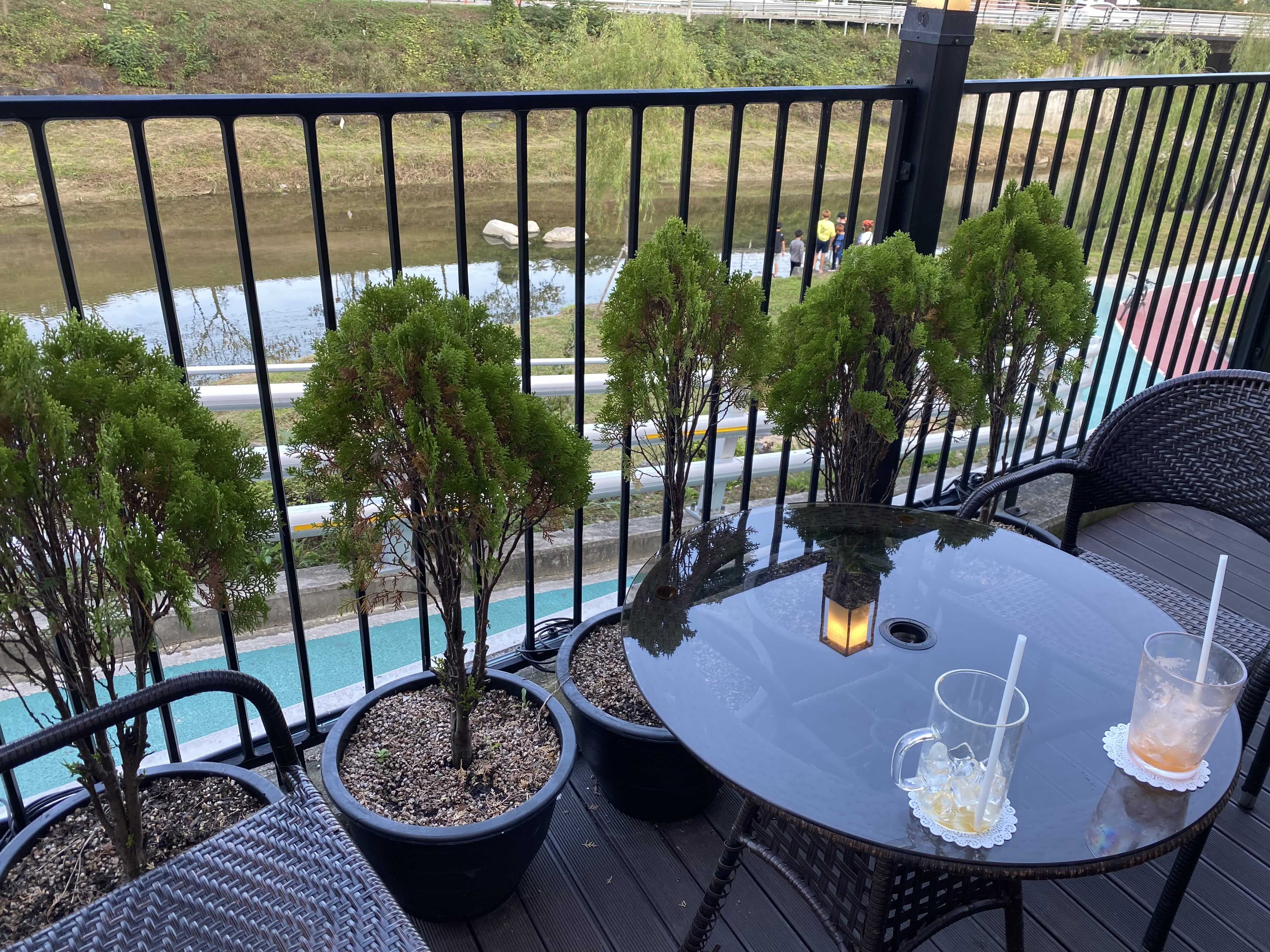 테라스 자리가 여러개있는데요, 바로옆에 천이 흘러서 풍경이 좋습니다.