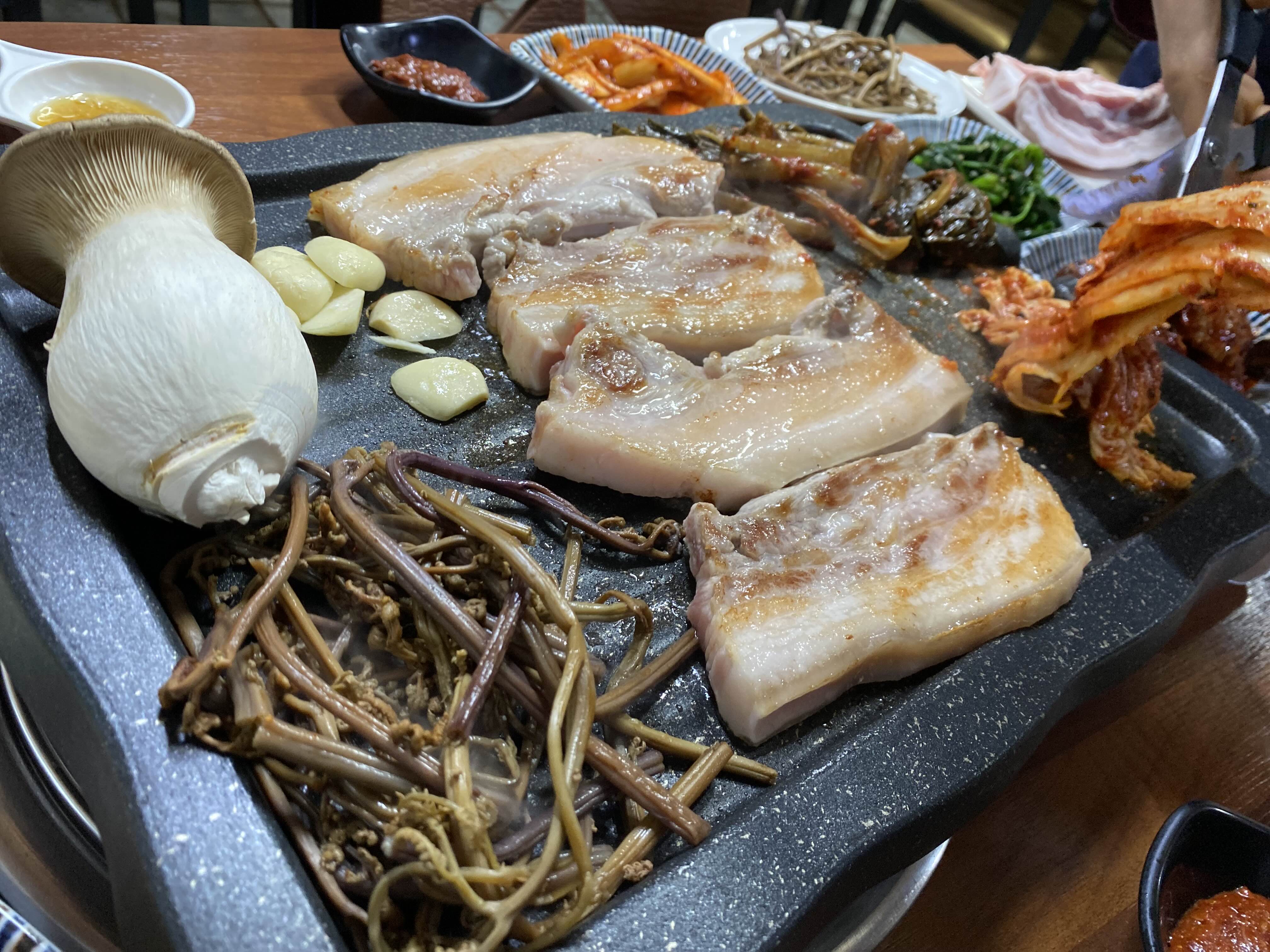 고기 올려놓고 김치와 버섯 구워먹느니 고기불판이 모자라네요