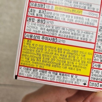 - 아세트아미노펜(타이레놀)의 과다 복용 시 간독성, 급성 간염, 약물중독, 두통 등 심각한 부작용이 발생할 수 있습니다[1][2][5].